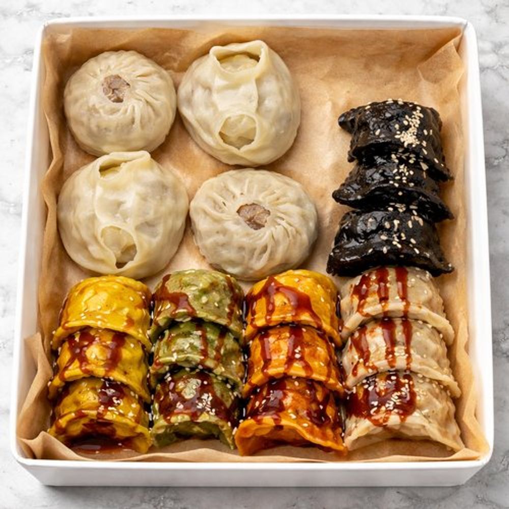 2 буузы, 2 манты, 10 гёдза