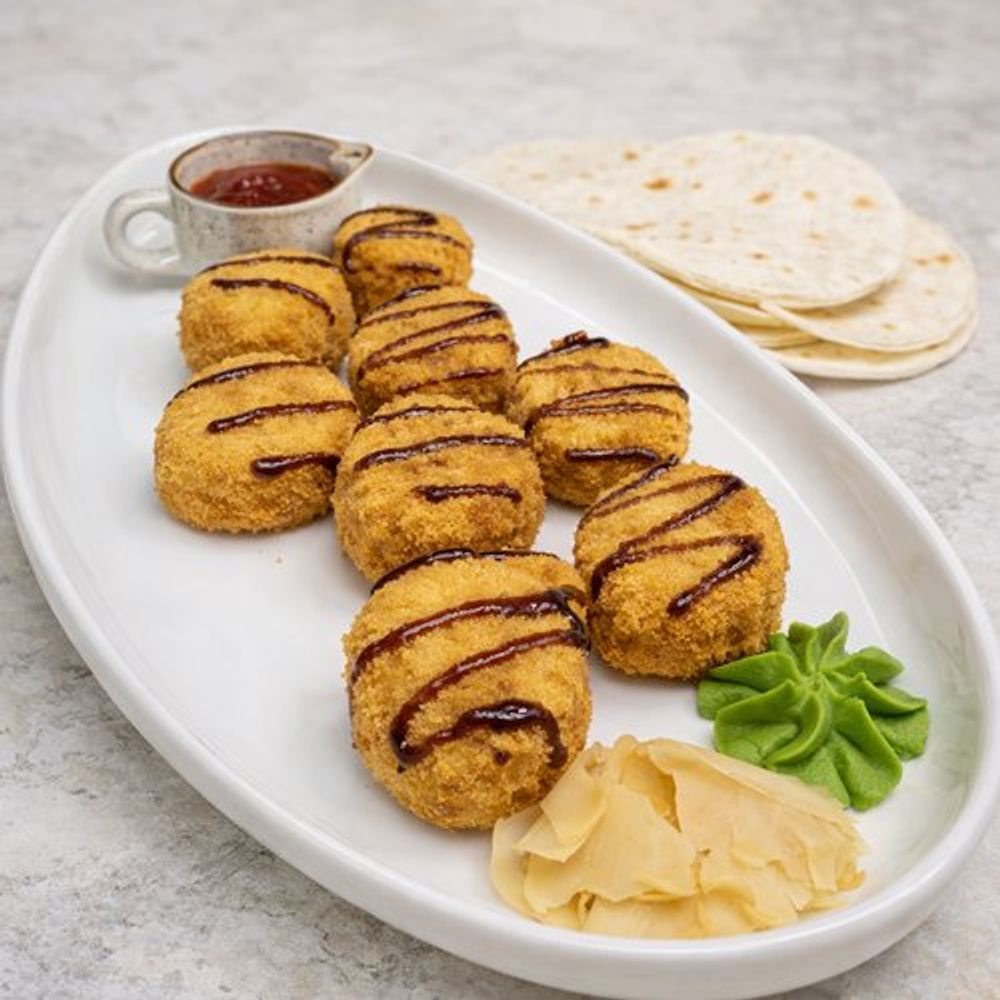 Состав: куриное филе, тортилия, сыр творожный, огурец, панировка, соус кисло-сладкий.